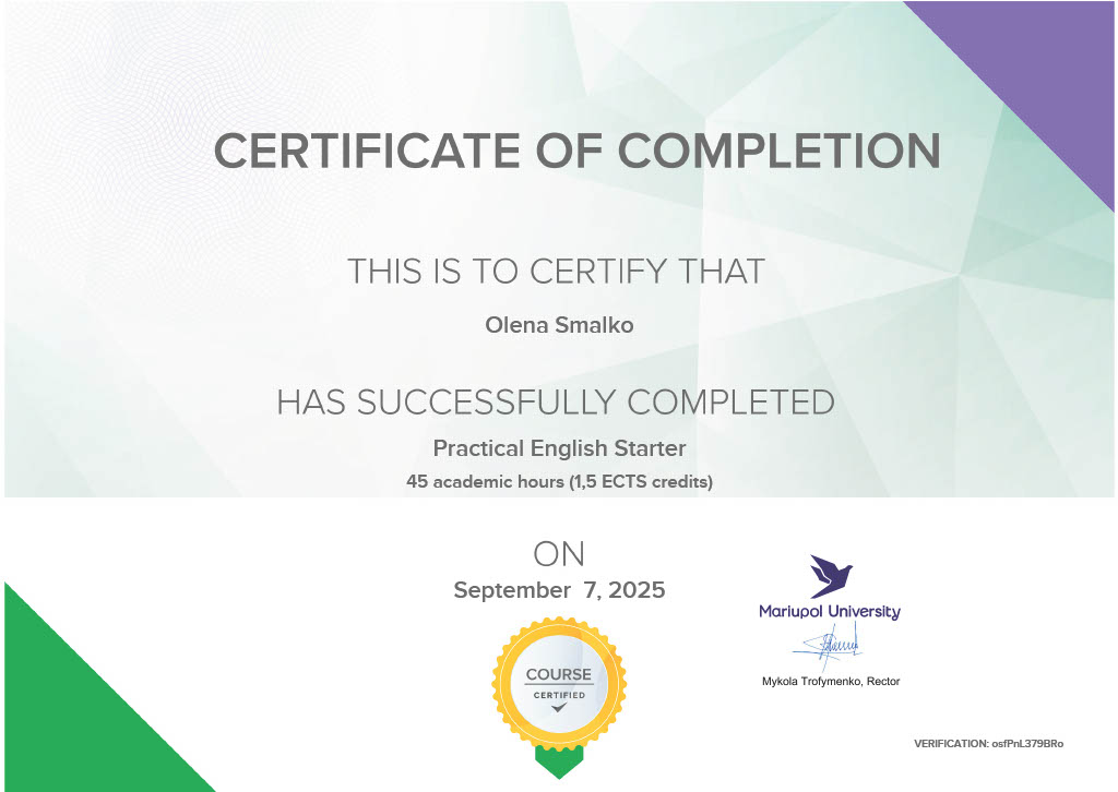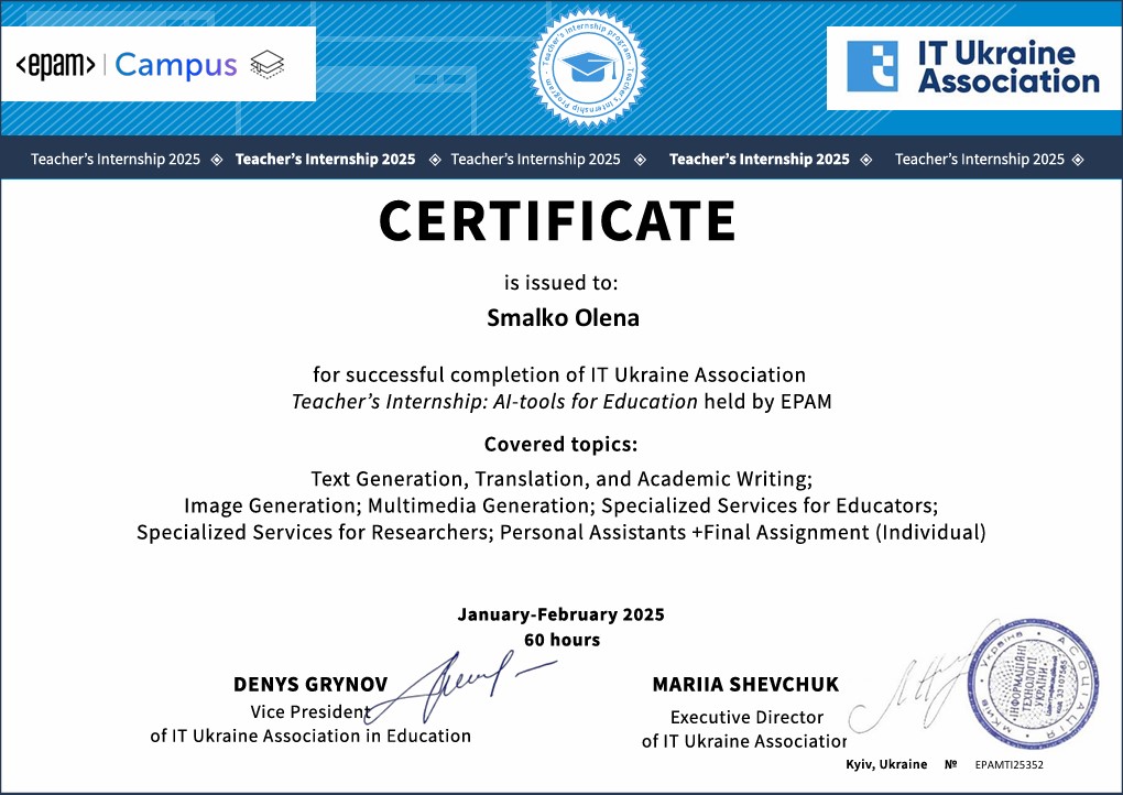 Електронна адреса: smalko.olena@kpnu.edu.ua