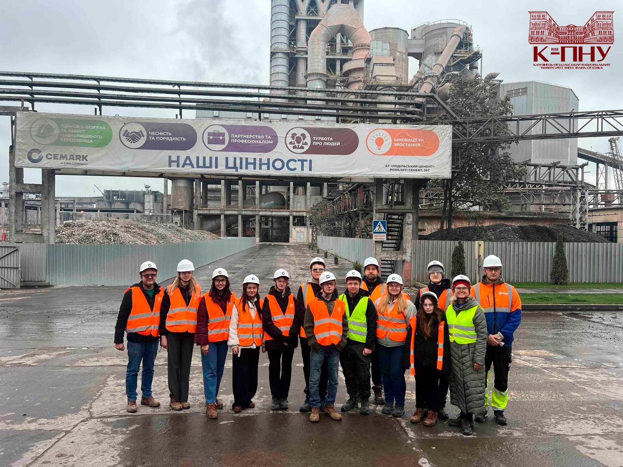 Здобувачі вищої освіти кафедри комп’ютерних наук разом із викладачами фізико-математичного факультету К-ПНУ здійснили важливу виробничу екскурсію на АТ «Подільський цемент», що входить до міжнародної групи компаній CRH. Серед учасників були: студенти СЕРЕБРЯНСЬКИЙ Артем, ЧЕРВАТЮК Юлія, СМОТРИКОВСЬКИЙ Леонід, МАКУШ Валерія, ГУМЕЛЬНИК Анатолій, ОКРЯК Віктор, НЕКРАСОВА Юліана, ШЕРЕПЕРА Олександра та ЯКУБОВСЬКА Каміла, а також декан фізико-математичного факультету ГЕСЕЛЕВА Катерина, завідувач кафедри комп’ютерних наук ІВАНЮК Віталій, викладачі МЯСТКОВСЬКА Марина та ФІЛАТОВ Антон. Ця подія стала ключовим етапом поєднання теоретичної підготовки з реальними виробничими процесами.