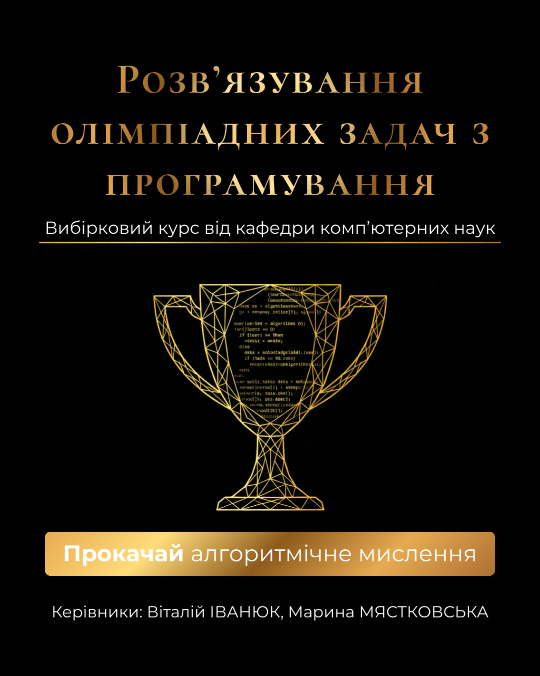 🥇 Розв’язування олімпіадних задач з програмування – розвиток алгоритмічного мислення через розв’язування складних задач.