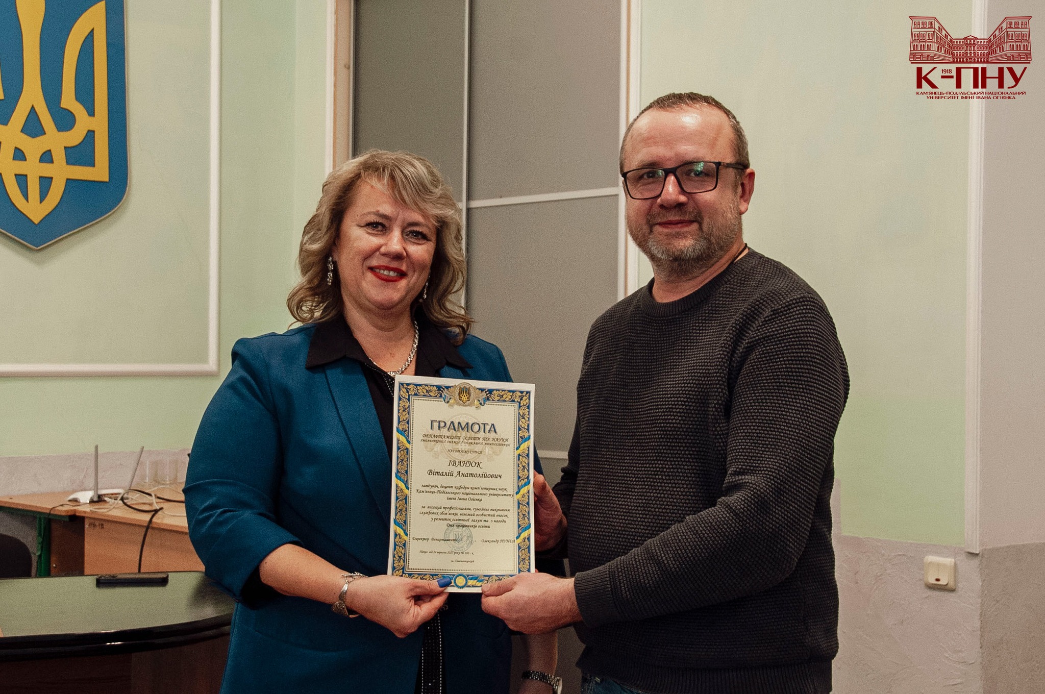 За високий професіоналізм, сумлінне виконання службових обов’язків, вагомий особистий внесок у розвиток освітньої галузі та з нагоди Дня працівників освіти грамотою був нагороджений завідувач кафедри комп’ютерних наук Віталій ІВАНЮК.